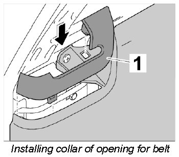 5. Position locking tabs of collar of opening for belt -1- on side trim panel and press them in.