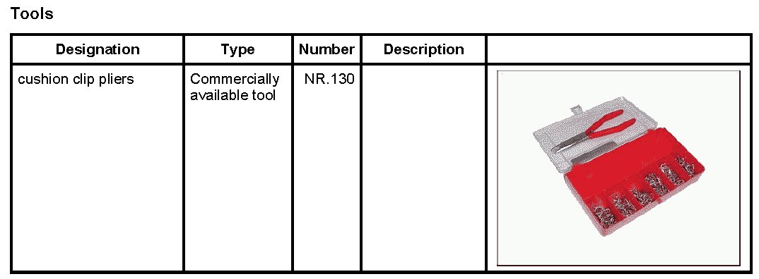 1. Position piping -2- for cover for middle backrest and padding -4- on the plastic frame -3-. Use the cushion clip pliers NR.130 and the cushion clips -1- to connect the cover strips and the plastic frame -3-.