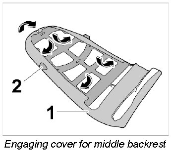 1. Disengage cover for middle backrest -1- out of the plastic frame -2- all the way round.