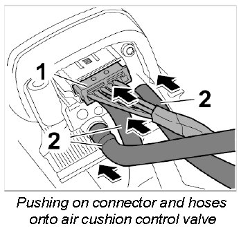 2. Push on the three hoses -2- onto the air cushion control valve.