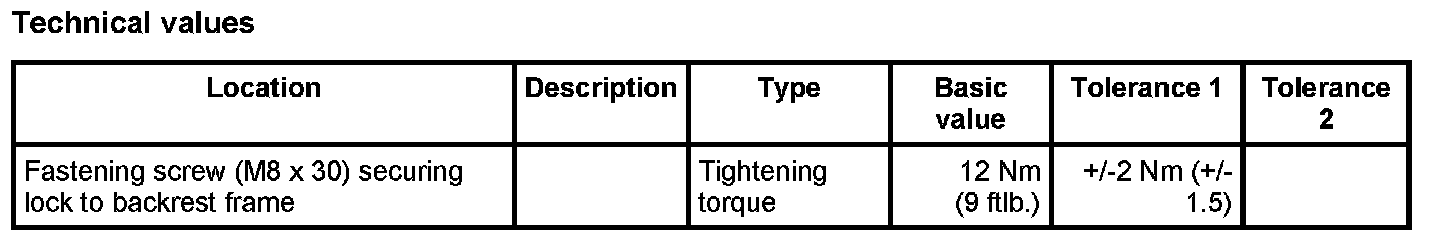 1. Position lock for backrest -5- on the backrest frame -arrow A- and screw in the fastening screws -4-. Tightening torque: 12 Nm (9 ftlb.)±2 Nm (±1.5)