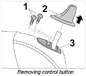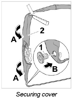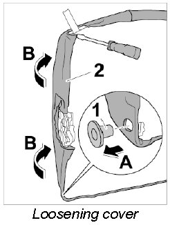 5. Press out cover for backrest -2- at the sides with a screwdriver -arrows B-.