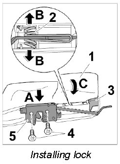 3. Press in reset spring -2- until it engages -arrows B- and check lever function.