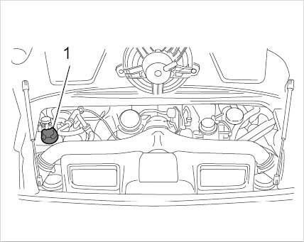 1. Open cap on the reservoir -1- and remove it.