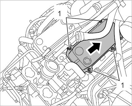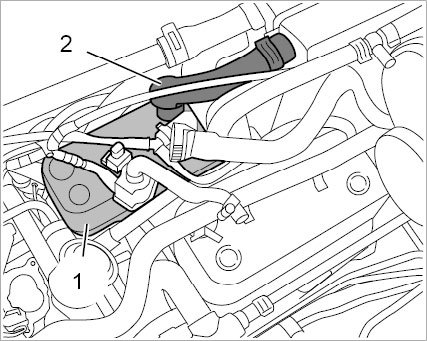 1.2. Pull off coolant vent lines -1- from the oil/water heat exchanger.