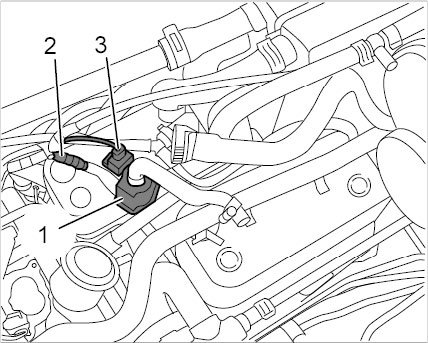 2.2. Pull off coolant vent lines -1- from the oil/water heat exchanger.