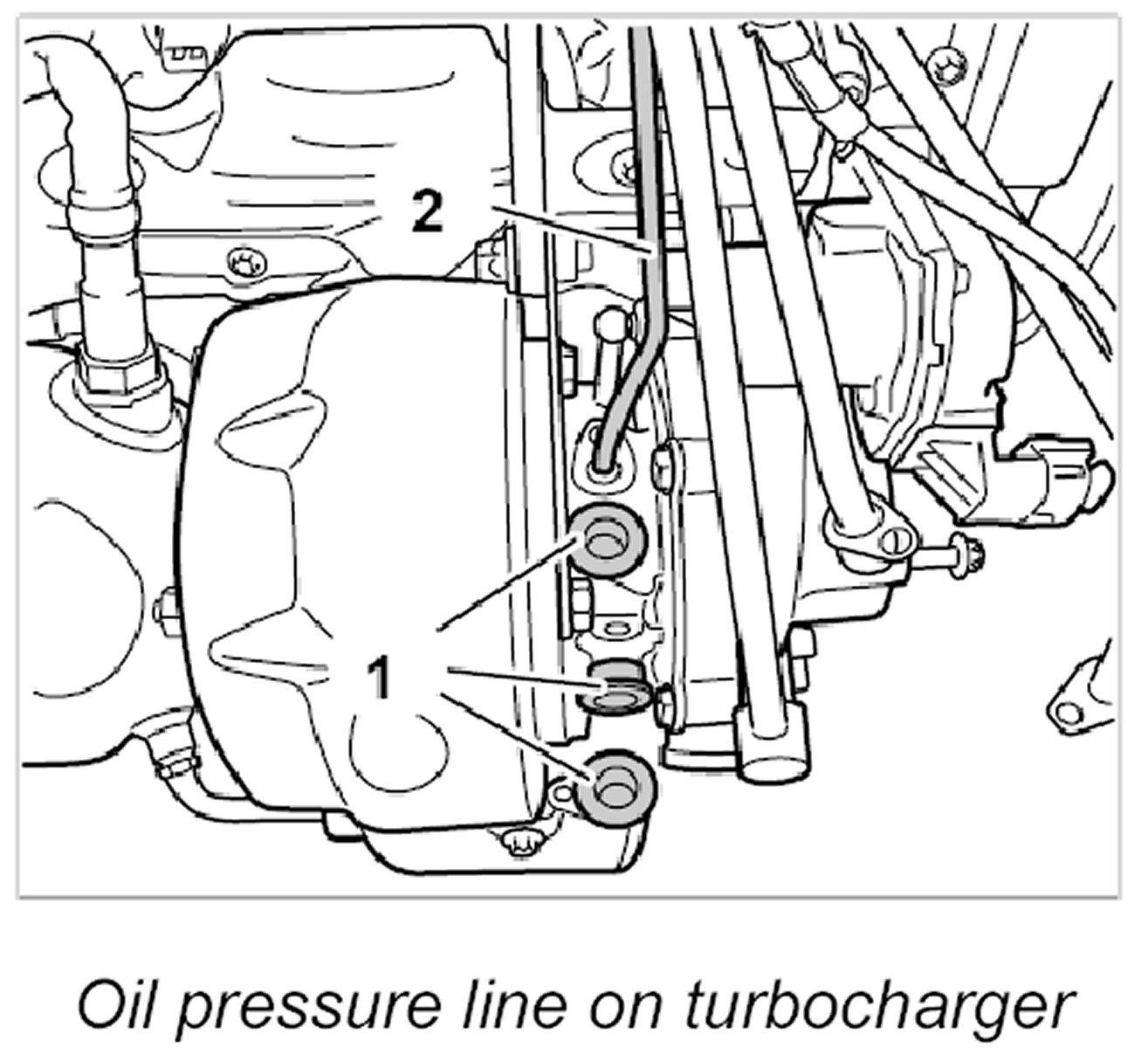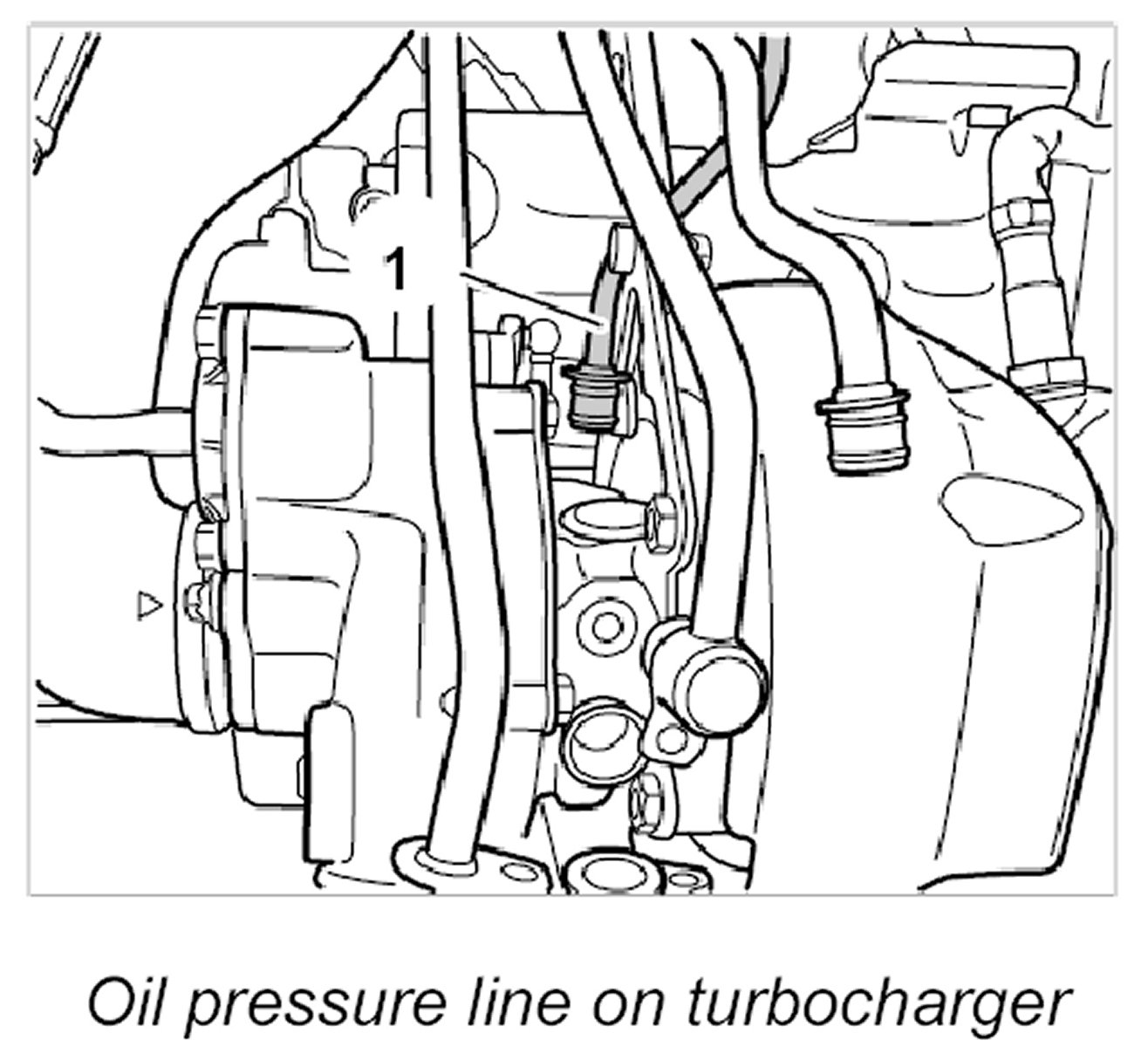 - Item 1: Supply line to turbocharger oil tank.