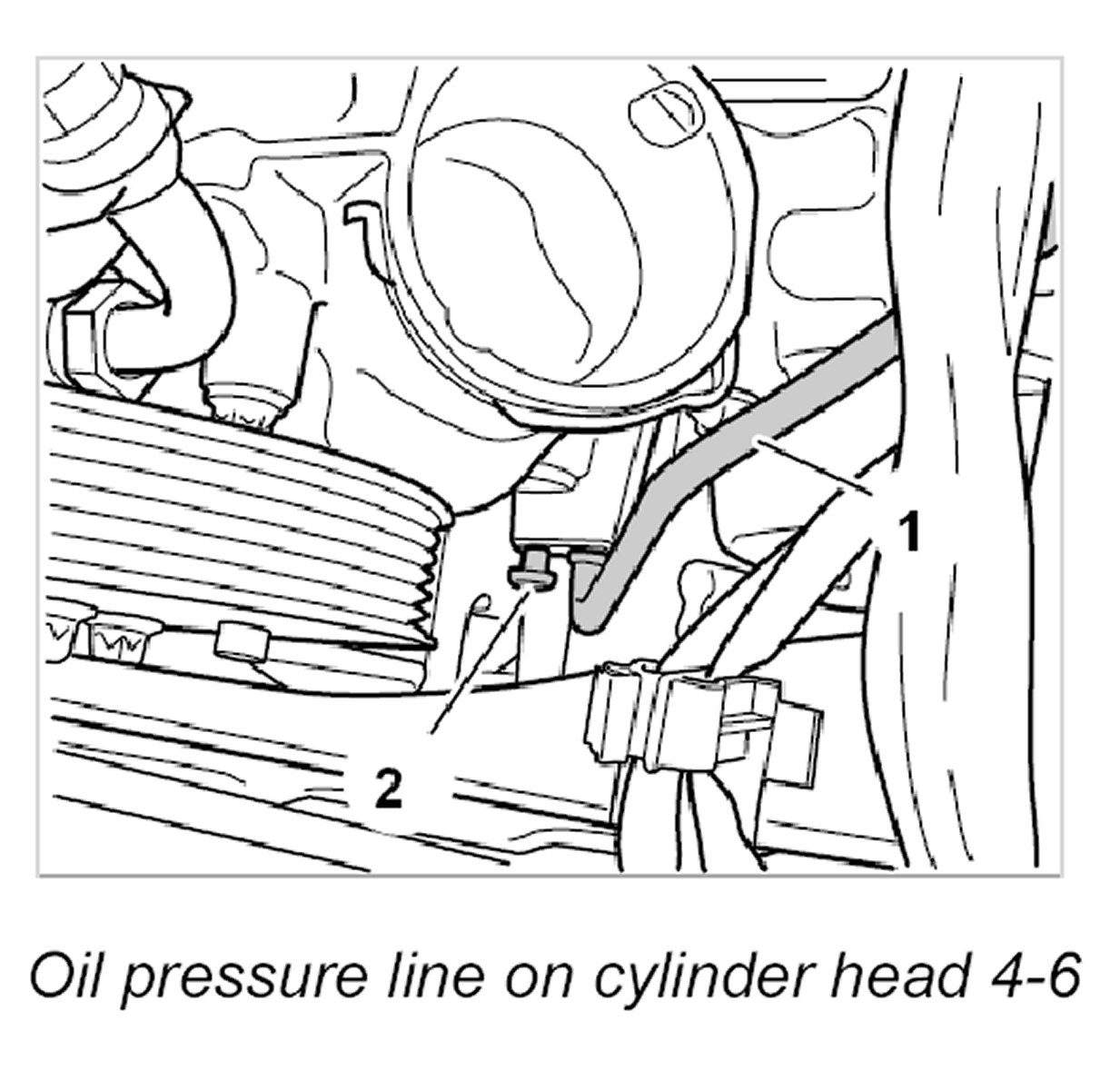 4. Loosen oil pressure line -1- on cylinder head 4-6.