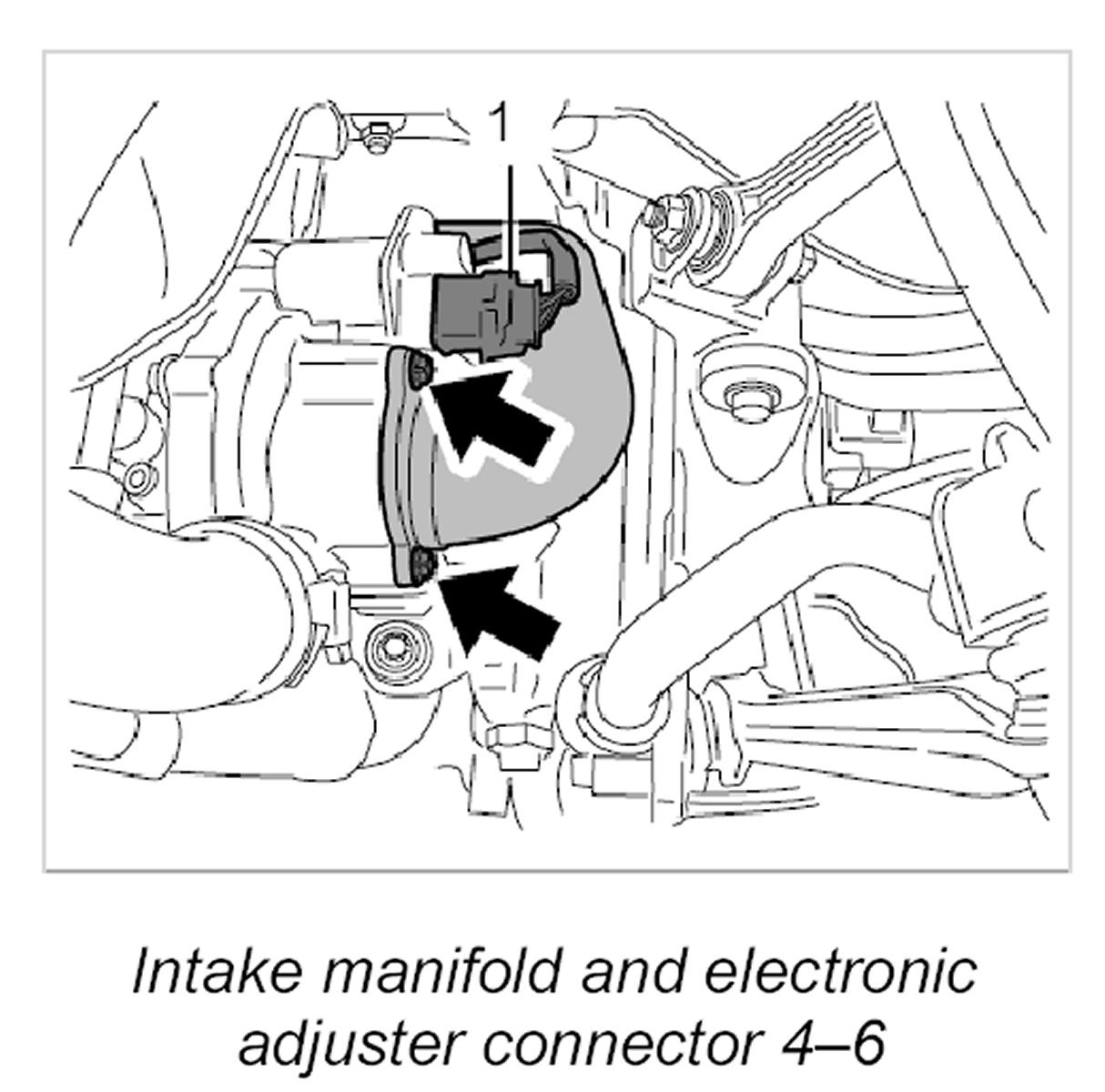 4.4. Pull off cable plug on electronic adjuster -1 -. Pull off intake manifold at the connection piece and take it out of the bracket in the engine compartment.