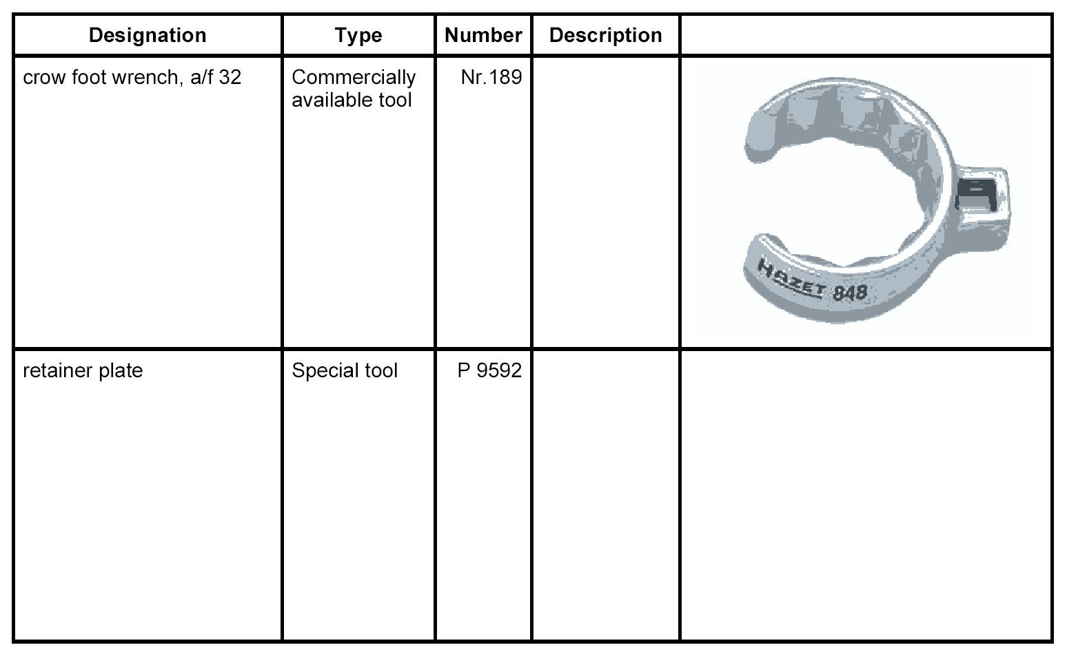 Raise the engine to assembly position using a retainer plate P 9592.