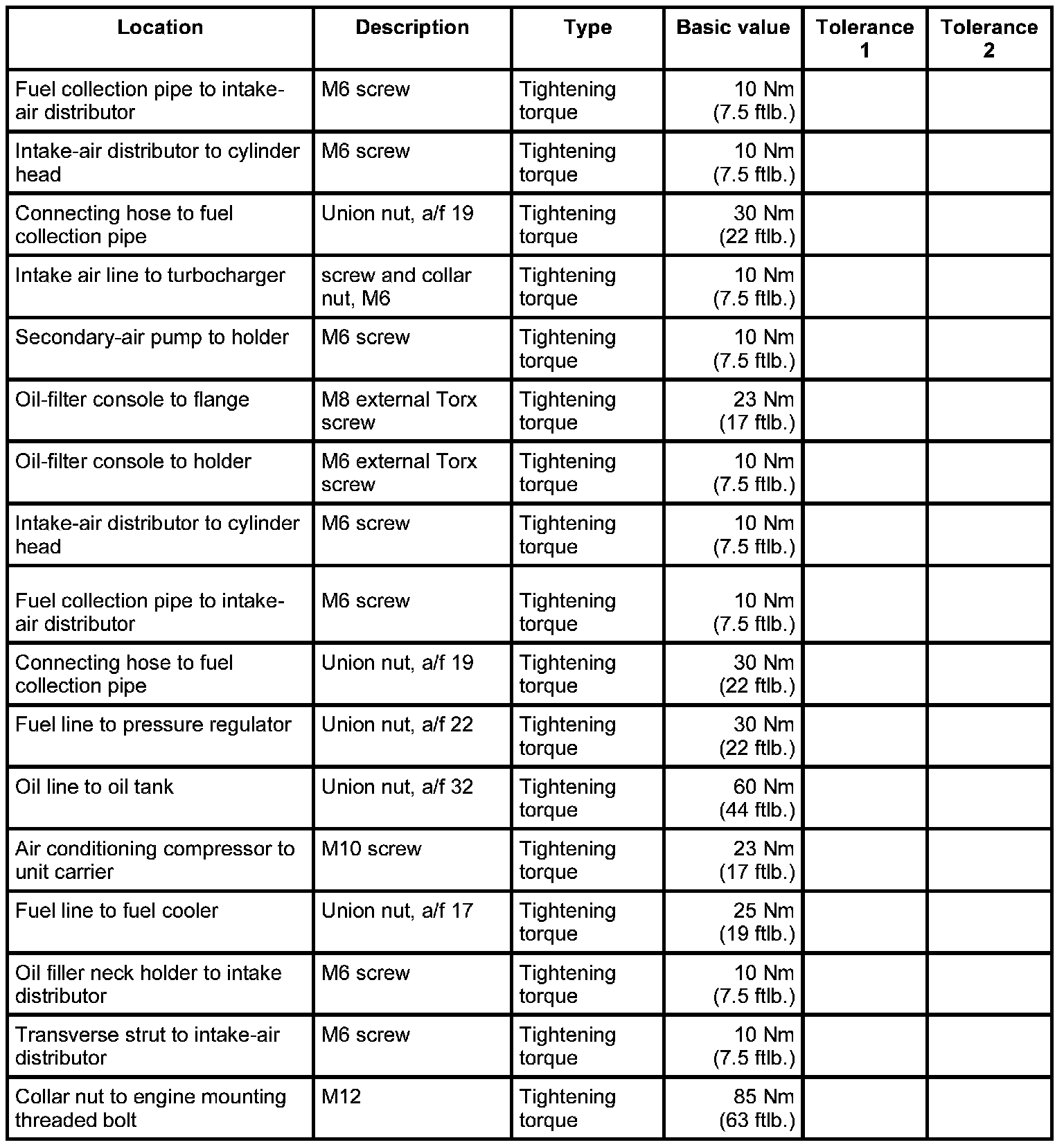 - Tightening torque: 23 Nm (17 ftlb.)