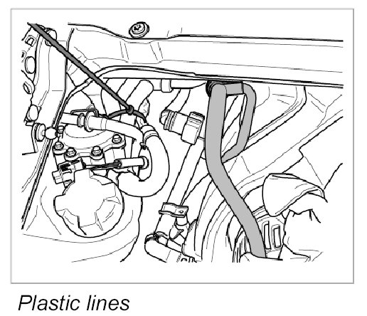 6. Fit lines on left of engine compartment.
