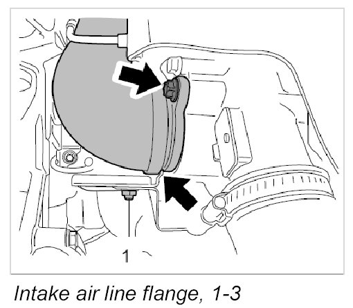 5. Loosen intake air line at the turbocharger 1-3.