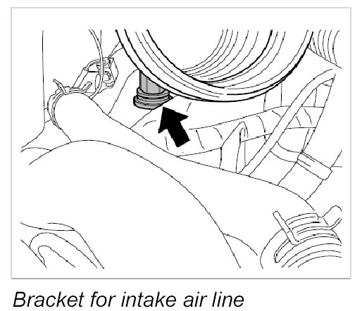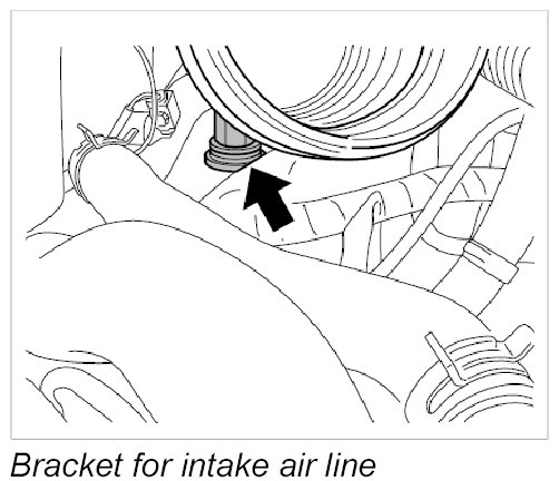 3.1. Position intake air line in the bracket -arrow- in the engine compartment.