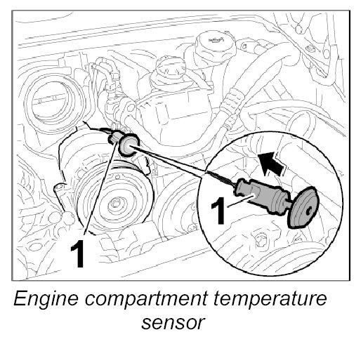 4.2. Pull engine compartment temperature sensor -1- out of the rubber holder.