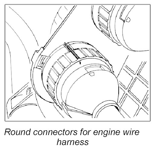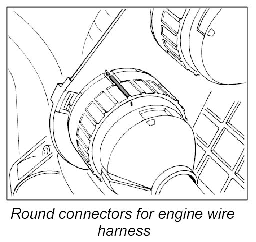 5.2. Open round connectors on engine wire harness.