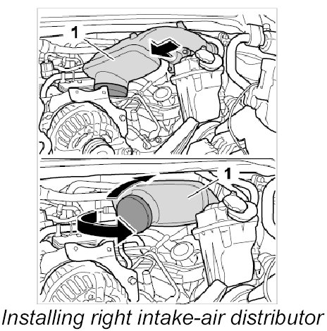 1.3. Introduce right intake-air distributor, twist slightly and insert, fit and tighten screws.