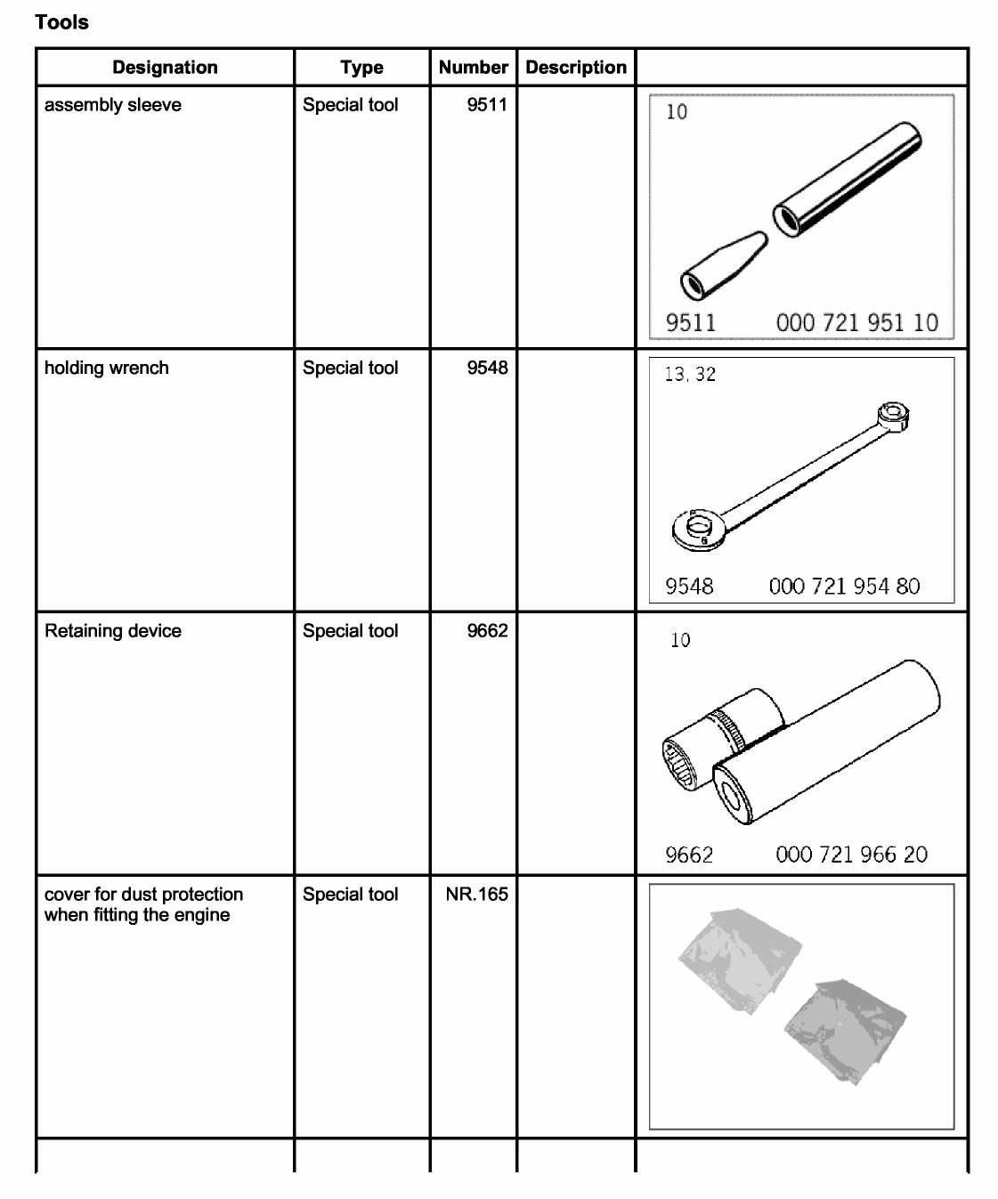 41. Retaining device 9662 must be fitted on the corresponding through bolt and can then be positioned using an aluminium sleeve from the set of retaining nuts P140.
