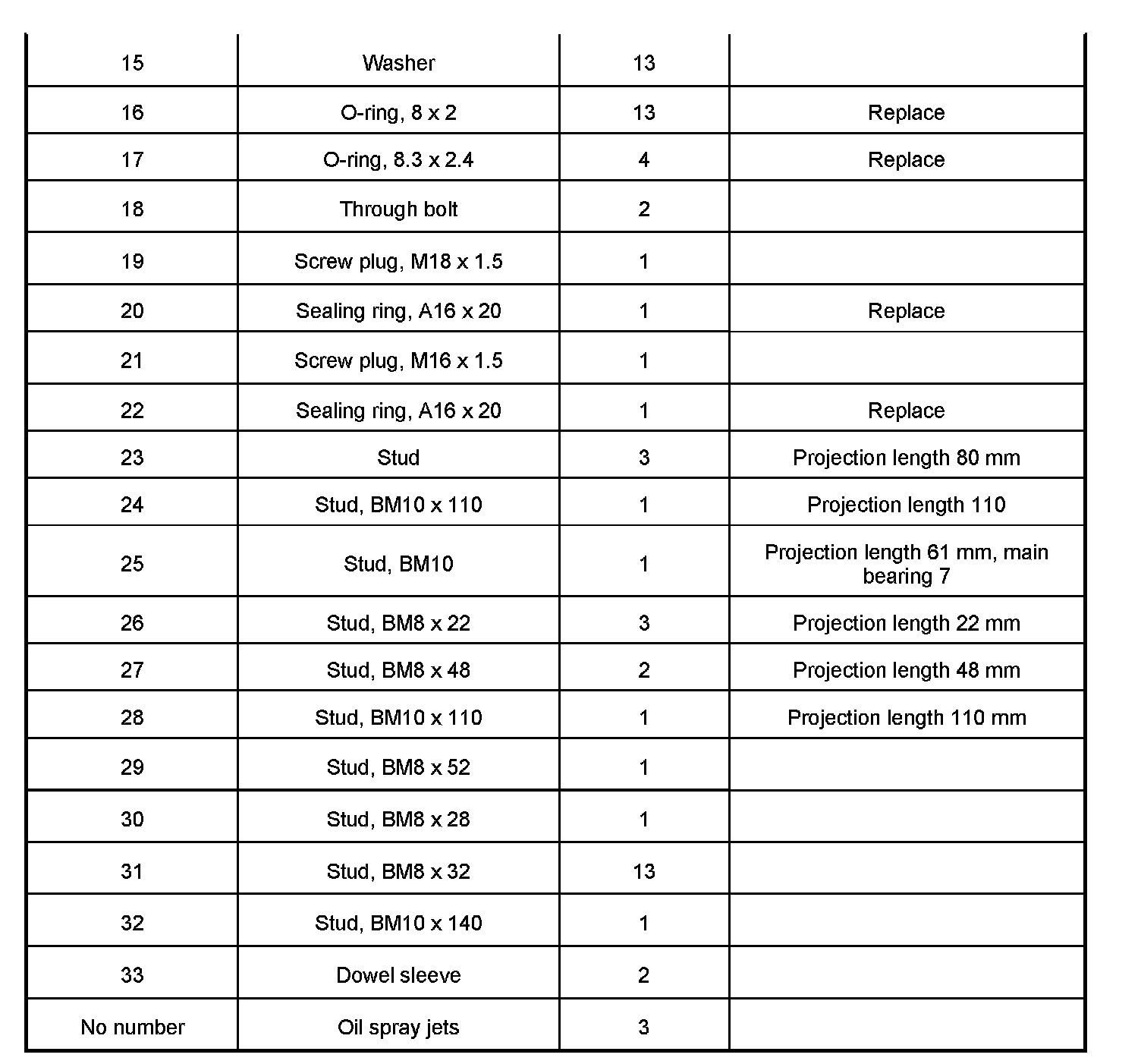 ^ Additional O-rings are inserted on four through bolts on the thrust block mount, thrust blocks 2, 3, 4 and 5.