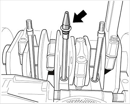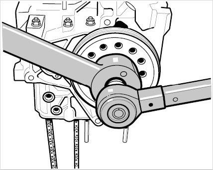 - The holding wrench must make contact with the pulley when tightening.
