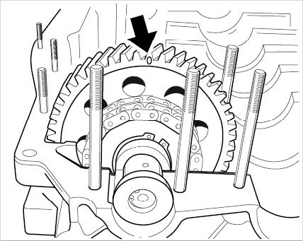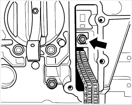 ^ Cover the chain slot briefly when fitting so that parts do not fall into the crankcase.