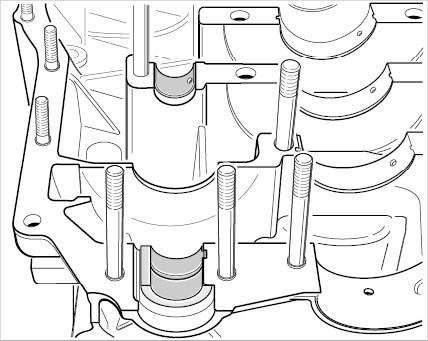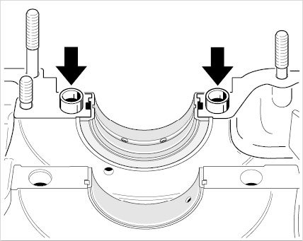 7. Insert new crankshaft bearing shells into the crankcase. Oil the bearings.