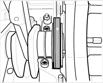 15. Fit shaft sealing ring on the crankshaft flange.