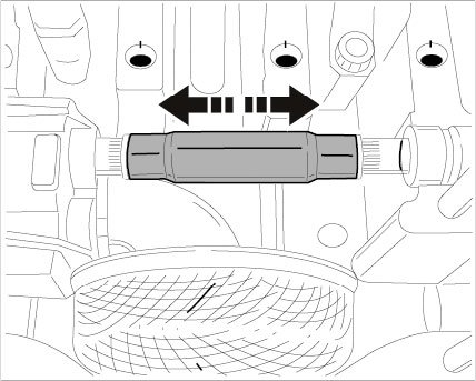 19. Check connecting shaft. The connecting shaft must move freely in axial direction. Loosen the oil pump with intermediate shaft again if necessary and shift the connecting shaft.