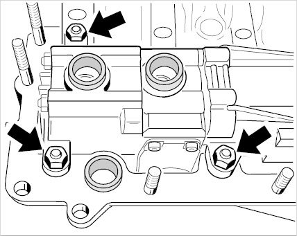 2. Loosen the 18 hexagon nuts (M8) on the crankcase cross bolt connection.