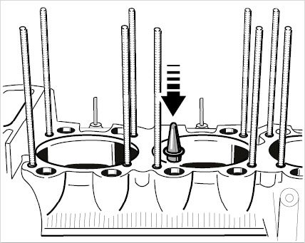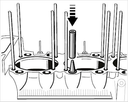 37. Fit dry sealing washers and press downwards slightly with the B-side of the cylinder sleeve.