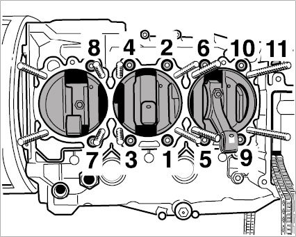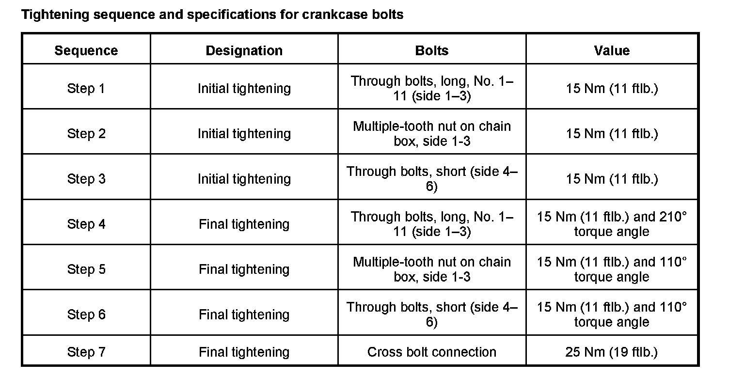 42.1. Tighten through bolts on side 1-3 -1-11- according to tightening sequence and specifications (see table below).