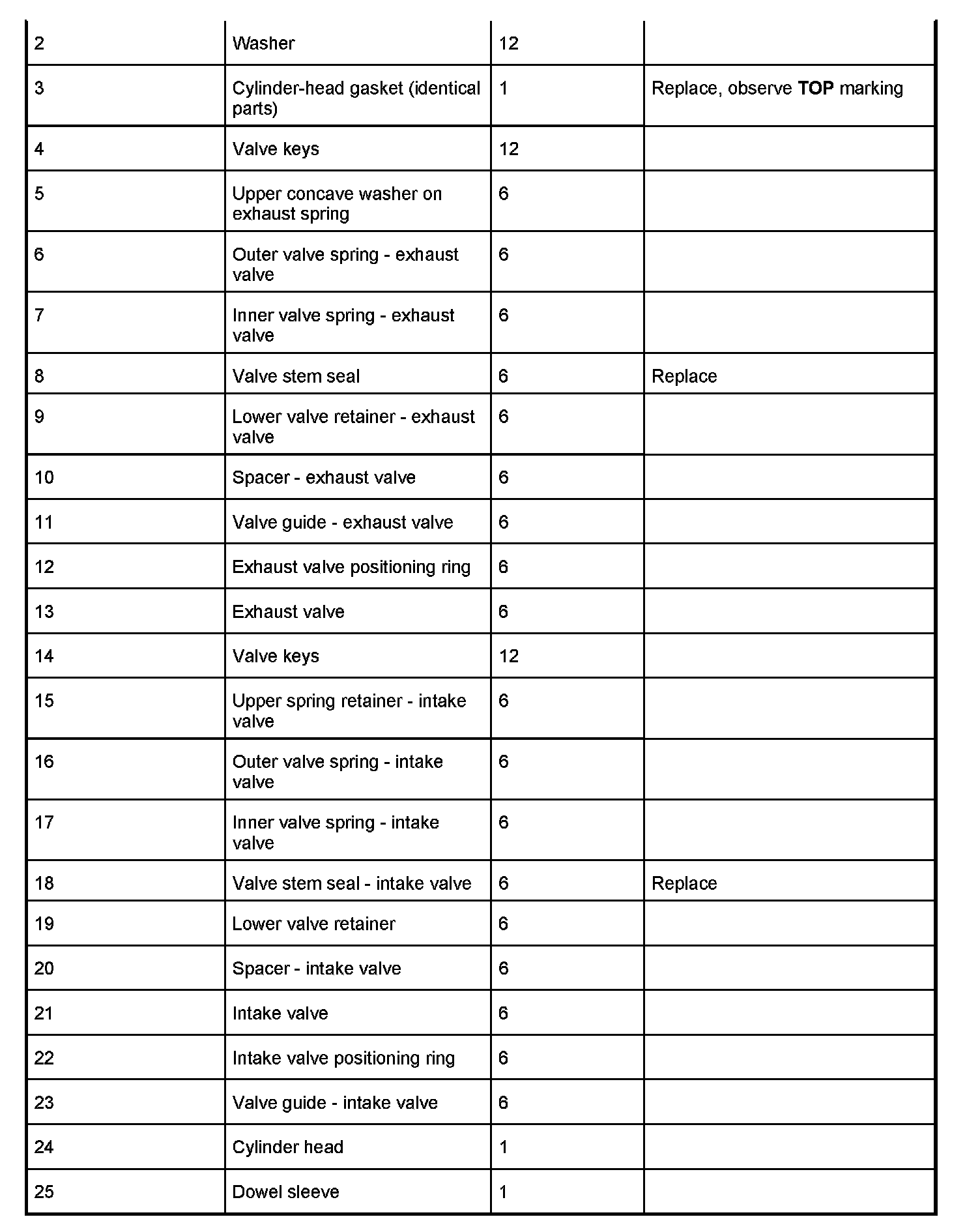 1. Replace cylinder-head gasket. The TOP marking must be clearly visible.
