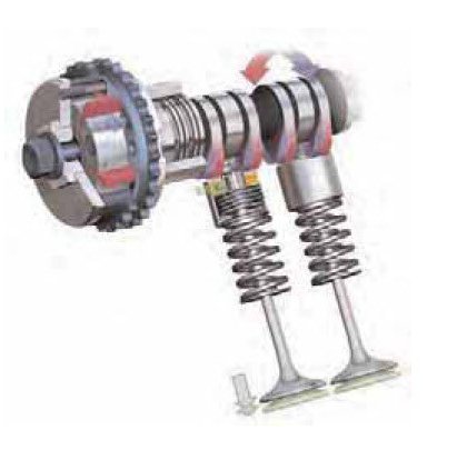 The 911 Turbo (997) features continuous adjustment of the intake camshafts by vane adjusters. The load and speed dependent adjustment range of the intake camshafts is 0 to 40° crankshaft angle.