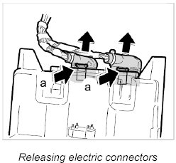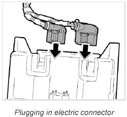 1. Insert electrical plugs in the air-conditioning system regulator until they are felt to engage.