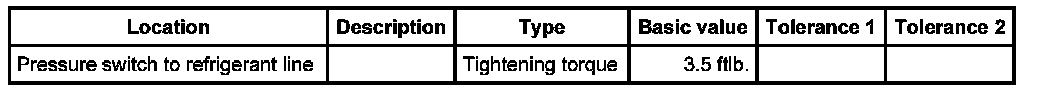 1. Screw pressure switch onto refrigerant line and tighten with an open-ended wrench. Counter with a second open-ended wrench. - Tightening torque: 3.5 ftlb.