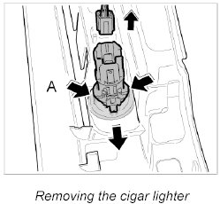 2. Press together the locks -A- and push out the cigar lighter out of the centre console.