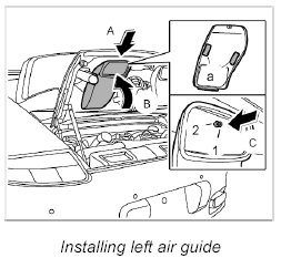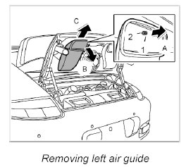 1.2. Fold the air guide down -Arrow B- and remove it -Arrow C-.