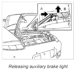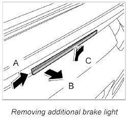 3.2. Carefully remove the auxiliary brake light by moving it to the left -Arrow C-.