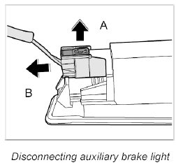 3.1. Press the auxiliary brake light as far as it will go to the right -Arrow A- and pull out the left side -Arrow B- until the connector no longer reaches into the opening.