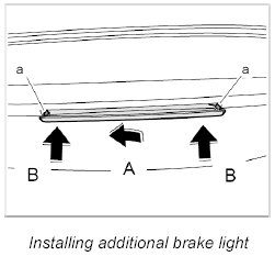 2.2. Push the auxiliary brake light in evenly on both sides -Arrows B- until the locking lugs -a- engage securely.