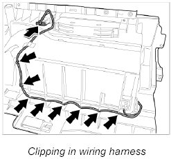 2. Lay the wiring harness and press in the mounting points on the glove compartment -Arrows-