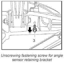 3. Unscrew fastening screw -3- for angle sensor retaining bracket on side member from below.