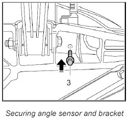 1. Fasten angle sensor to retaining bracket and secure with fastening screw -3- to the side member.