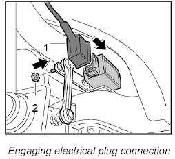 INFORMATION: If the angle sensor has been replaced, the front end control unit must be calibrated; afterwards the headlight setting must be checked and adjusted if necessary.