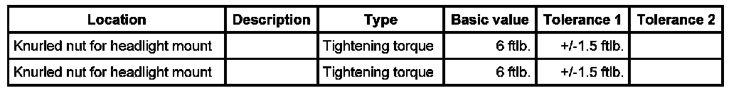 3. After adjustment, tighten the fastening nuts. - Tightening torque: 6 ftlb.+/-1.5 ftlb.
