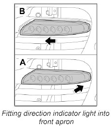 3. Fit direction indicator light into the front apron and push it in.