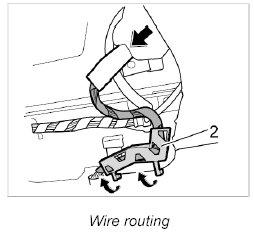 8. Engage holder -2- for the electric wire and push wire in behind the roof liner.
