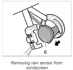 9. Slowly remove rain sensor -6- from the windscreen.