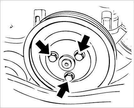 6. Unscrew three outer Torx screws (M8 x 12) on the pulley and remove the pulley.