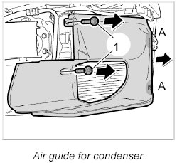 2. Pull the air guide forward and disengage it at the condenser -A-.